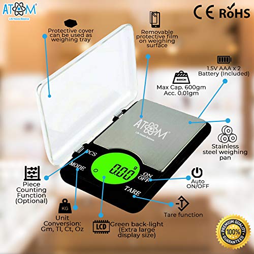 ATOM A110c Jewellery Electronic Digital Weighing Scale Capacity, Blue, 600g-0.01mg