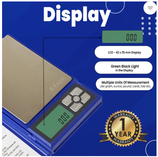 - Multiple Units: The Eagle Digital Weighing machine efficiently weighs in 5 different unit conversion feature g, oz, ct, gn and tl. Makes It Universal In Use. This Pocket Weight machine Material is Plastic (ABS Body) + Stainless Stell Body & Color is Blue.