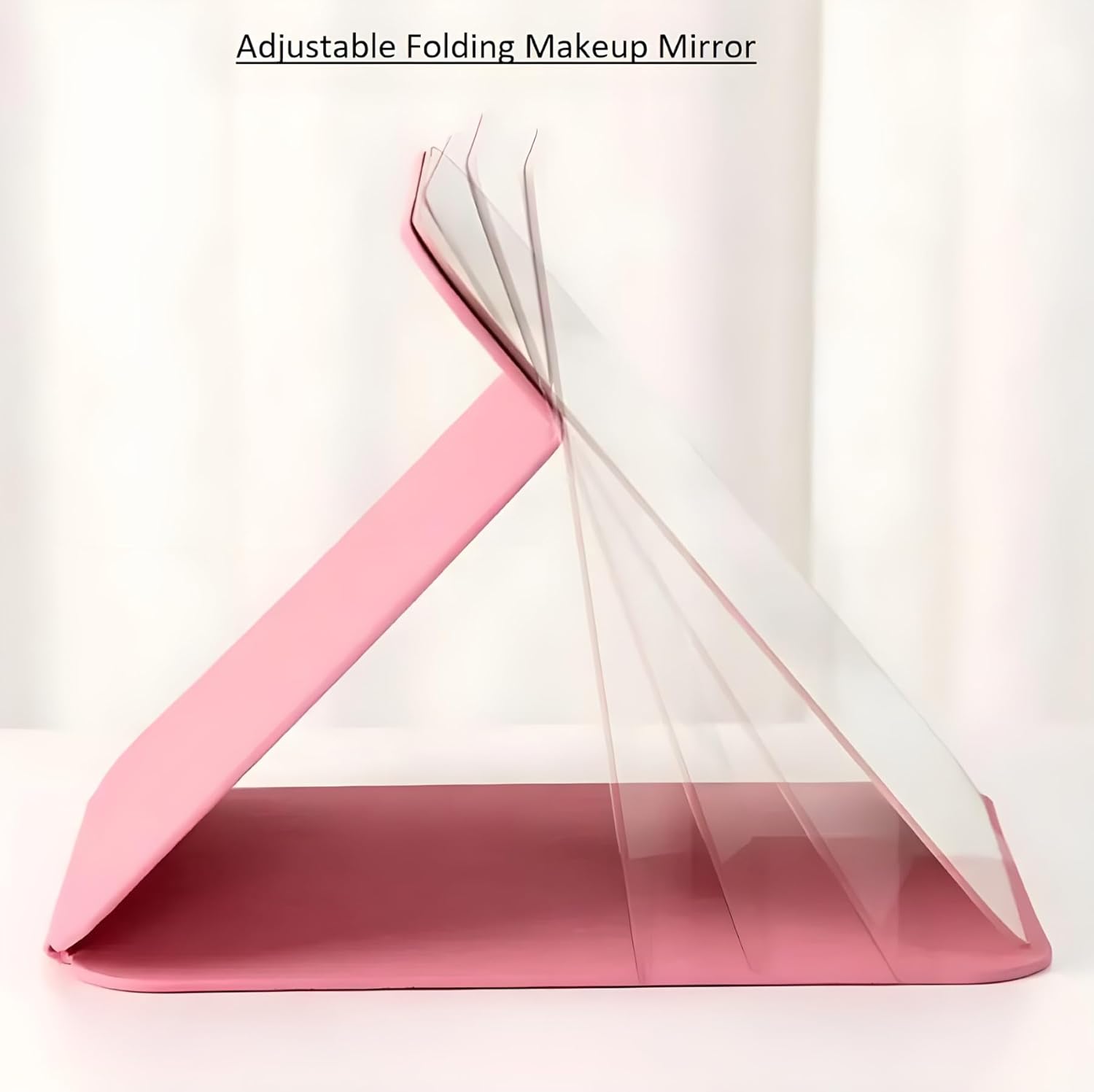 Foldable Multicolor Mirror with Stand, Compact Portable Folding Free Standing Vanity Mirror, Frameless PU Leather (Round Edge)