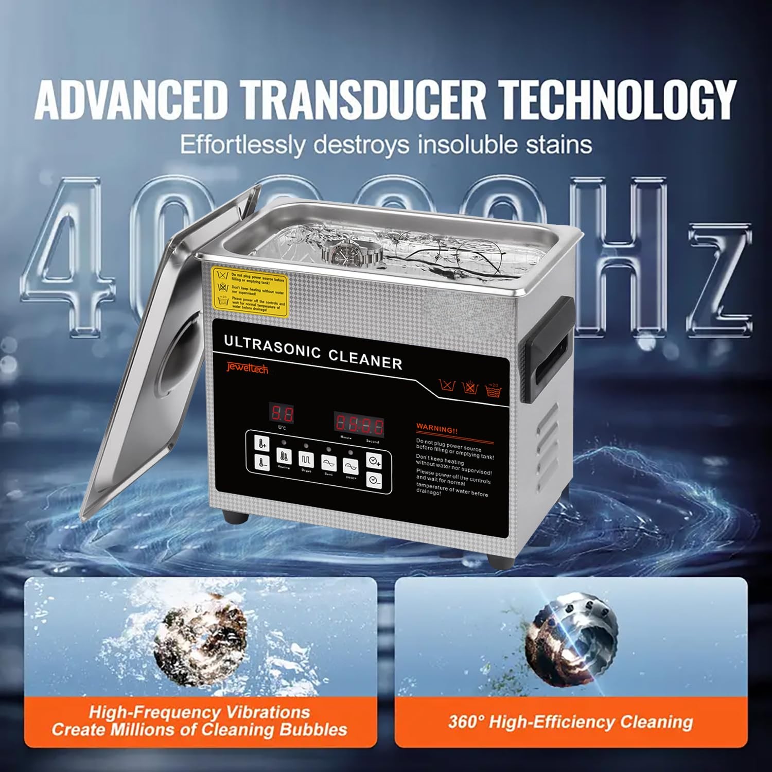 - ULTRASONIC TECHNOLOGY: Advanced 42000kHz ultrasonic transducer creates high-energy bubbles for thorough cleaning without harsh chemicals